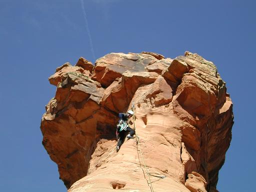 This is on the fifth 'pitch' of Independence Monument's 'Otto' route, April, 2002.